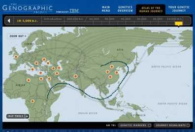 遺伝子の構成要素から、アフリカから出た人類がどのように移動してきたかを