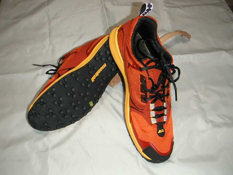 最後に今回使用した道具を紹介しておきます。写真のものですが、なかなか軽くて快適に走れ、裏のパターンが大きいのでぬかるみにも強そうです。一応、側面のプロテクトもされています。オリエンテーリングシューズに比べるとプロテクトは弱いですが、その代わり走り易くなっています。このところオフロード系のレースではナイキのエア・テラというのを使っていたのですが、昨年のこのレースであたるようになってしまい、スポンジでごまかしてきたのですが、新しい靴を買いました。Montrailの靴です。渋谷のアートスポーツで買ったのですが、家に帰って型名を調べようとしたらホームページに見つからず、古いモデルかなと思っていたのですが、17日に再度みたら見つかりました。Montrail highlander のヨーロッパ・日本・香港向け別注モデルだそうです。