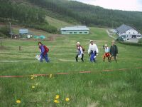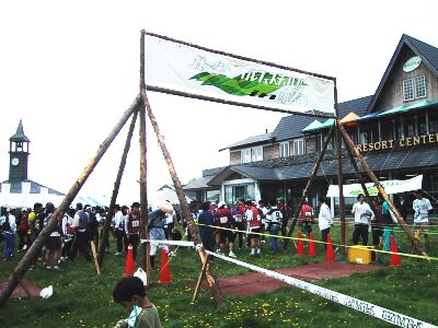 そして、林道にでると登りだ。地図を見ると、スキー場の上の横断した地点までずっと登りだ。はや歩きで前の人を何にか抜いていく。ここまで来ると気分はもう楽なものだ。そしてスキー場。急斜面すぎて、スピードに乗ってとはいかない。いかにブレーキを少なくするかを考えてくだった。そして、スタート地点が見え、あとちょっとと思ったら、騙されたという感じ。地図では単純にスタート地点に戻るようになっていたが、実はクロカンコースの後半を走るのだ。スタート地点より100mくらいは下まで降りたと思う。きつかったが最後は走ってゴールした。 ゴール地点では司会者というのかずっとしゃべりまくりでゴールした人の名前を読み上げていた。