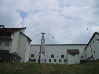 そして、MTBの4時間トライアルも見ながら、OL参加者のゴールも見る。ゴール前の急斜面に座って見ていると、ホテルの建物の周りをものすごい数のつばめが飛び回っている。つばめの群舞という感じだ。