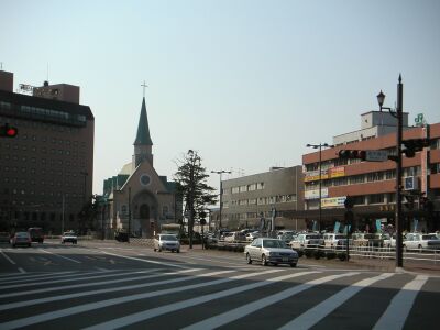 ![]() 釧路駅まえには教会がある |